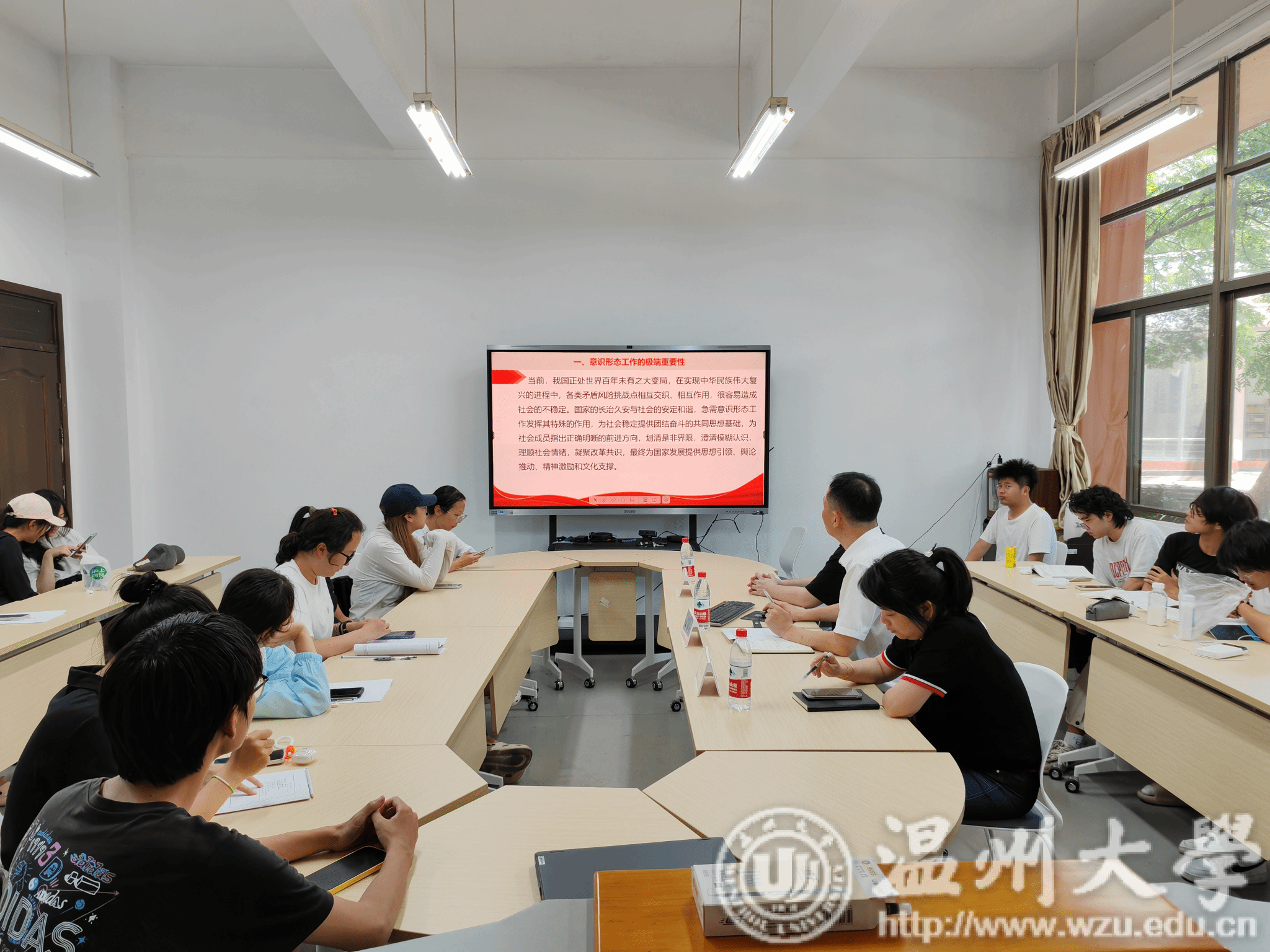 会议室举行行前安全教育会议,学院党总支书记潘从义、学工办主任靳颖、辅导员彭凯轩以及此次出国访学交流的23名学生参加会议。