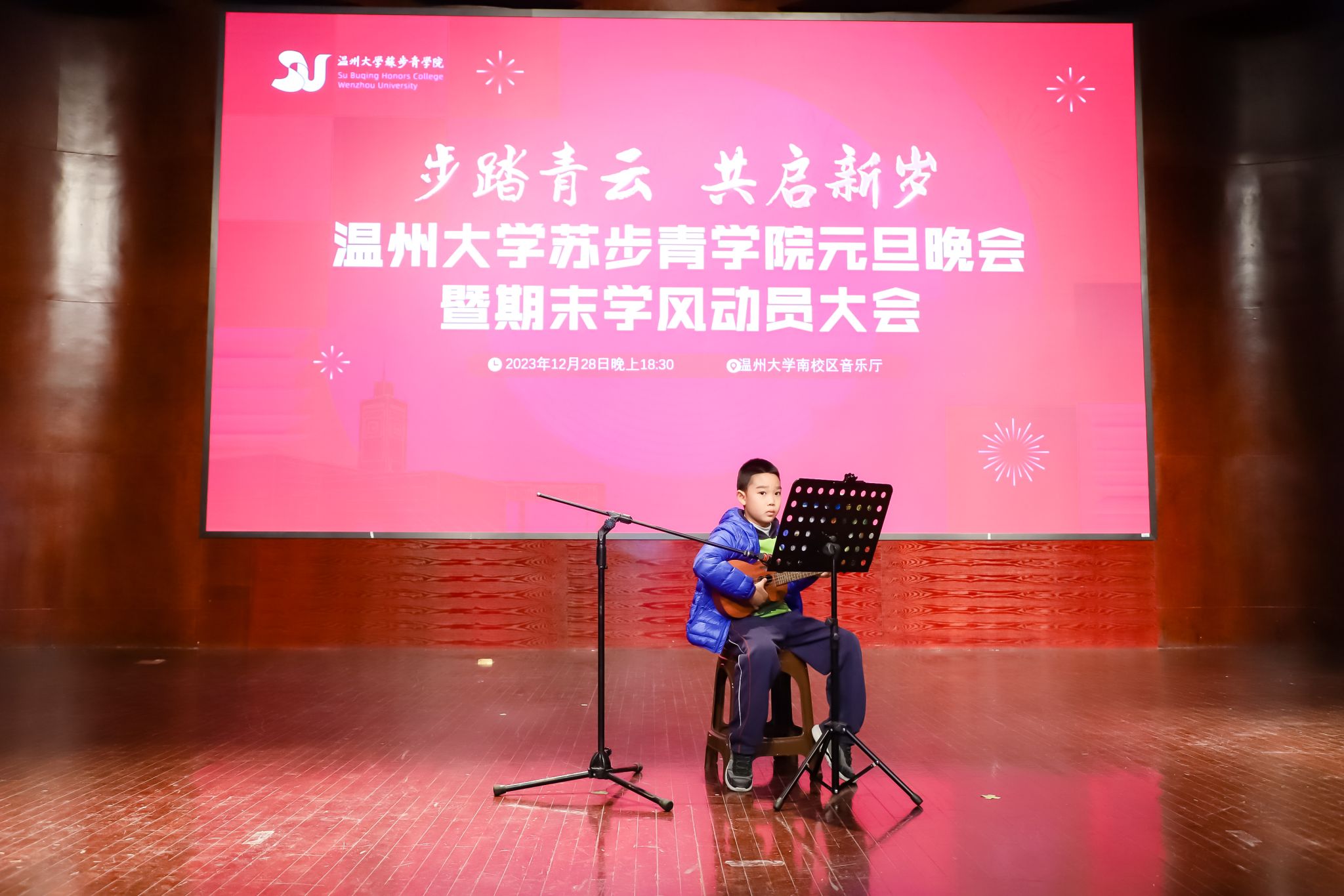 南校音乐厅隆重举办了“步踏青云,共启新发”元旦晚会暨期末学风动员大会。
