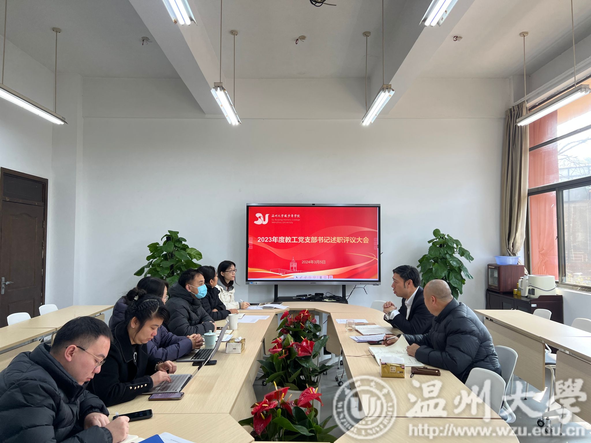 党总支在瓯4-109党员之家召开2023年度党支部书记述职评议会。学院党总支书记应中、执行院长姜锐、教工党支部书记王彬以及全体党员参加会议,会议由应中主持。