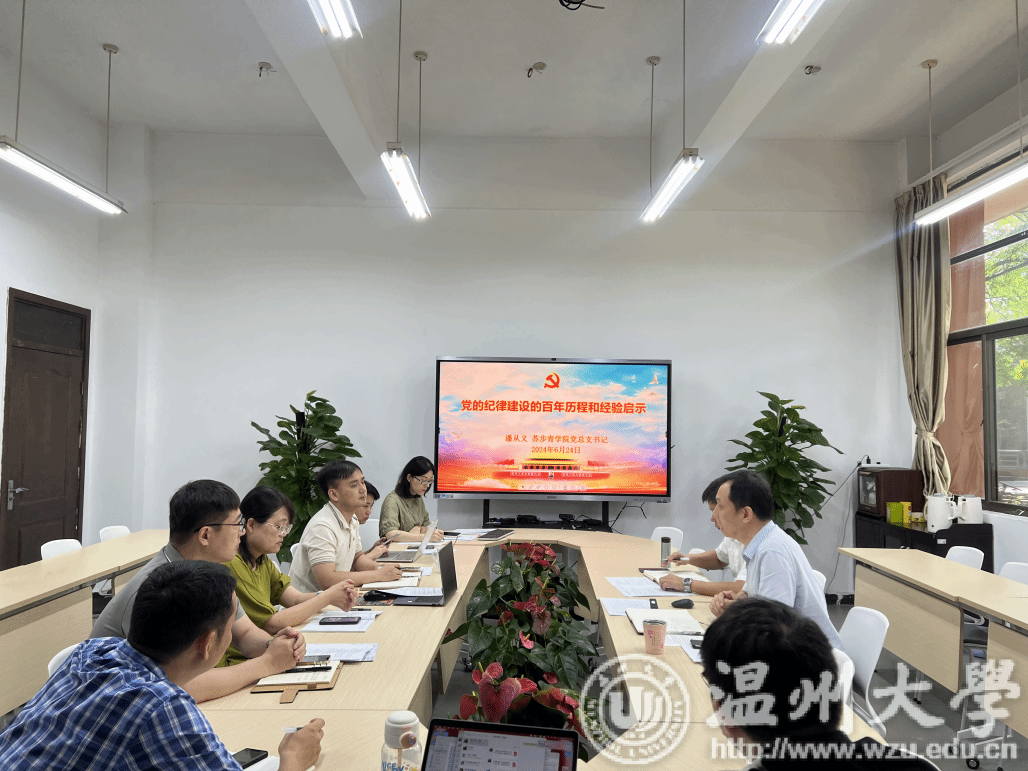 6月24上午日本做爱 学院党总支书记潘从义《党的纪律建设的百年历程和经验启示为题,讲授党纪学习教育专题党课,全体教职工党员参
