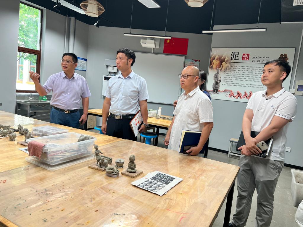 叶超程带领调研组参观了学校非遗文化馆、瓯菜博物馆、安全教育馆、温州工艺文化馆等特色场馆,对学校场馆资源、课程建设和教育理念等方面进行了详细介绍,调研组表示温实践校在瓯越乡土文化建设、场馆课程德育融合等方面取得的成效值得学习和借鉴。