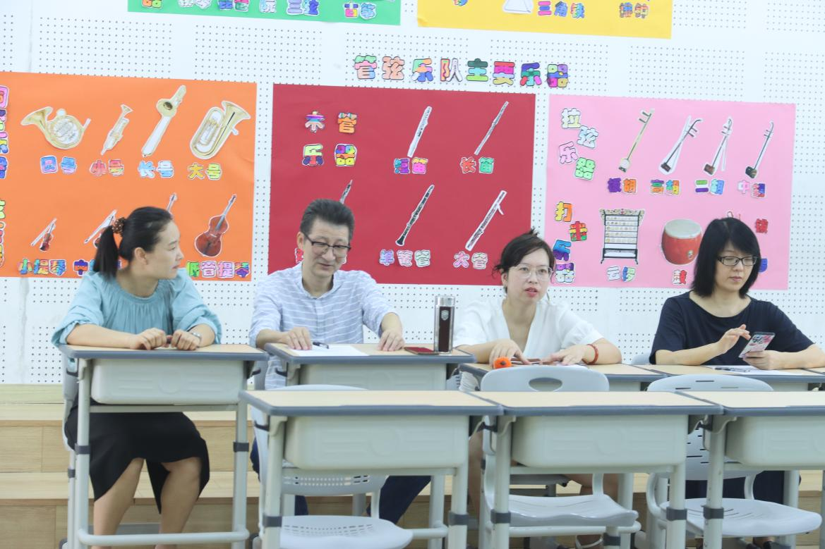全体人员及校队成员参观校园。在屈校长的带领下,我院一行在参观校园的过程中深入了解了学校的发展情况、每月的重点工作及成果。榕园学校的环境优美,校园文化氛围浓厚,教学内容与形式丰富,在过去的暑假里,榕园学校开展学科整合项目化工作,学生展示的作品无不传达了“人人都能享受艺术”的教学理念。