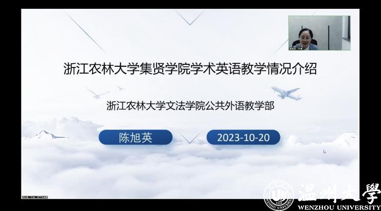 分别邀请了浙江农林大学集贤学院副院长徐丽君和《学术英语》课程负责老师陈旭英分享国际化工作经验,我院党总支书记应中、执行院长姜锐、教学综合办副主任王彬、大外部副主任王素娟等教师参会。