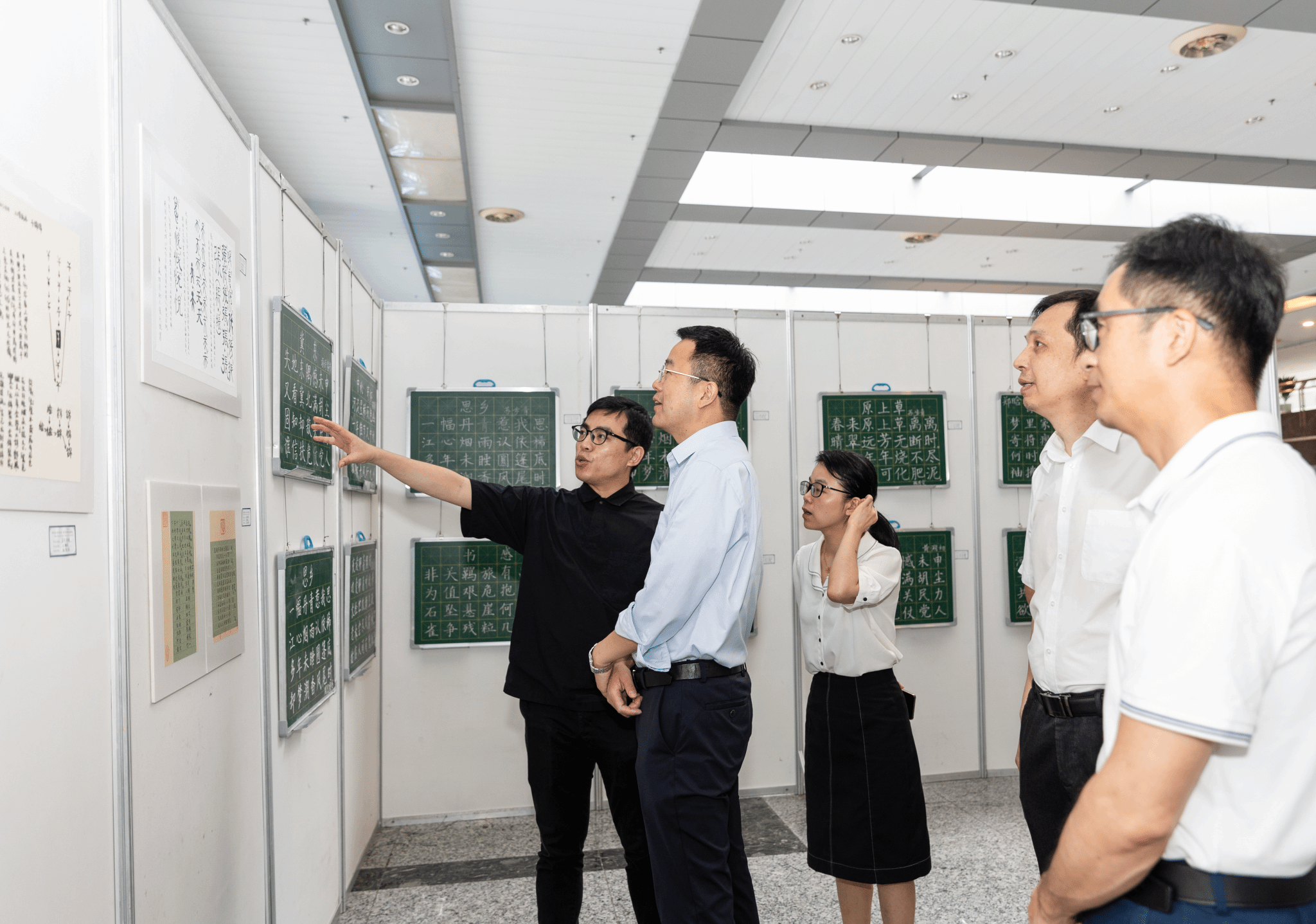此次作品展依托溯初实验班《书法美育》课程,共展出16个师范专业学生创作的100余件作品,以“主动、互动”的名字溯源、以“生动、灵动”的板书集锦、以“感动、触动”的校庆献辞、以“心动、跳动”的诗词赓续为组合,全面实施美育浸润行动,以美育浸润学校、浸润学生、浸润教师。“名字溯源”让学生对自己的姓氏开展寻根溯祖,明晰自己姓氏的根之所在;“板书集锦”让学生独立开展高质量的规划教学,成为促进学生成长的笃行者;“校庆献辞”让学生与母校心连心,成为温大卓越教师的筑梦人;“诗词赓续”让学生跨越古今,品味和传承诗词中的中华文化美。