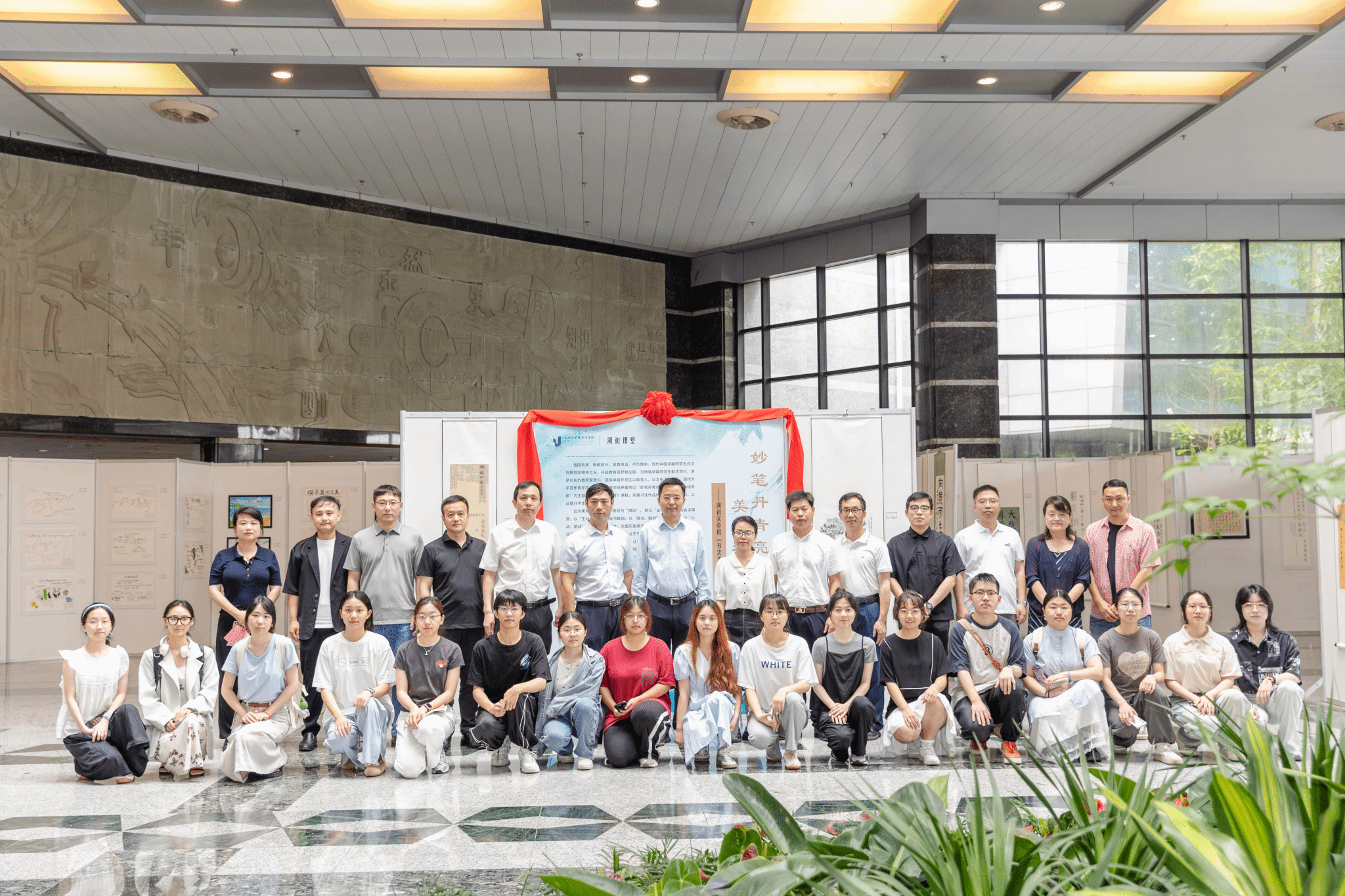 在育英图书馆大厅开展主题为“妙笔丹青亮风采,美育律动绽新颜”的书法课程作品展。日本做爱