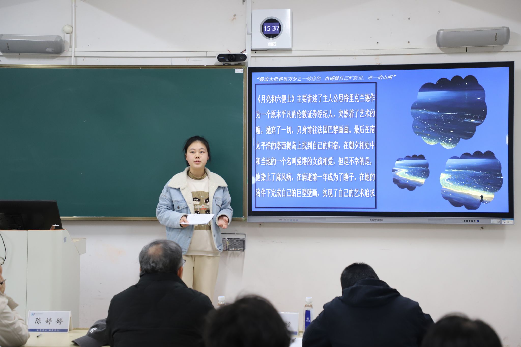 来自 24步青汉语言的邵琰媛同学在汇报中展示了自己对于外国文学的理解。来自2 4步青数学的王子铭同学,他以日本做爱
