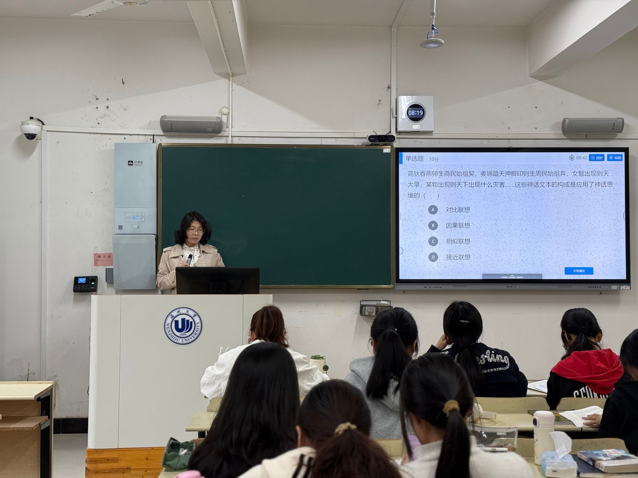 听课过程中,听课教师认真记录课堂内容,细致观察教师授课方式、学生课堂参与度及教学效果,并在课后与任课教师、学生代表进行交流,详细了解课程进度安排、教学重难点把握及学生个性化学习需求。《大学英语高阶(二)》通过案例分析、小组讨论等形式强化学生学术英语应用能力;《创意写作》以启发式教学引导学生突破思维定式,激发创作灵感;《化学信息学》注重理论与实践结合,培养学生数据分析与科研工具运用能力;《民间文学》则通过神话原型解析深化传统文化认知。
