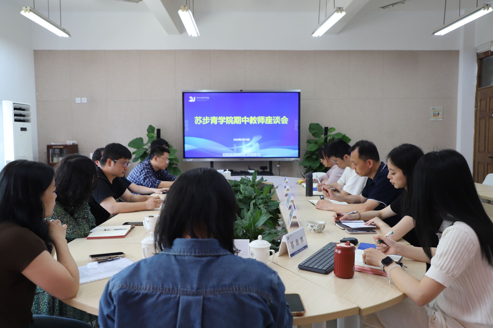 2024-2025学年第二学期期中教师座谈会在南9-A204会议室举行。学院党总支书记潘从义、来自4个专业学院的专业负责人、学业导师,以及学院教学科、学工办相关教师齐聚一堂,围绕本科教学、课程优化及人才培养等议题展开深入研讨,凝聚改革共识。会议由教学科副主任麻小加主持。