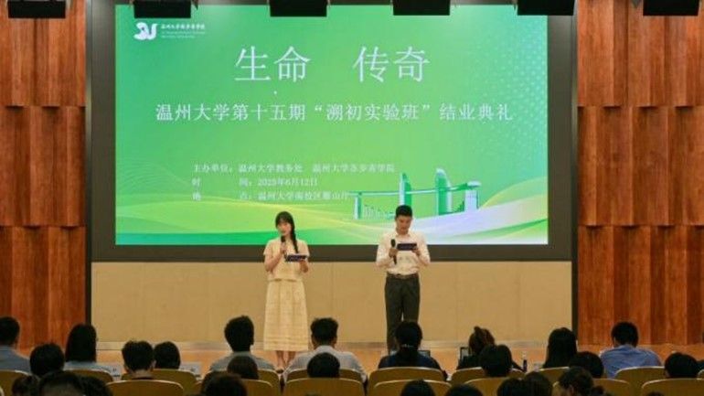 雁山厅内灯火辉煌,一场以“生命·传奇”为主题的结业典礼在此举行,为第15期溯初实验班学子们的学业生涯画上了圆满的句点。典礼由两位曾身为军队侦察兵和坦克兵的溯初班同学主持,日本做爱