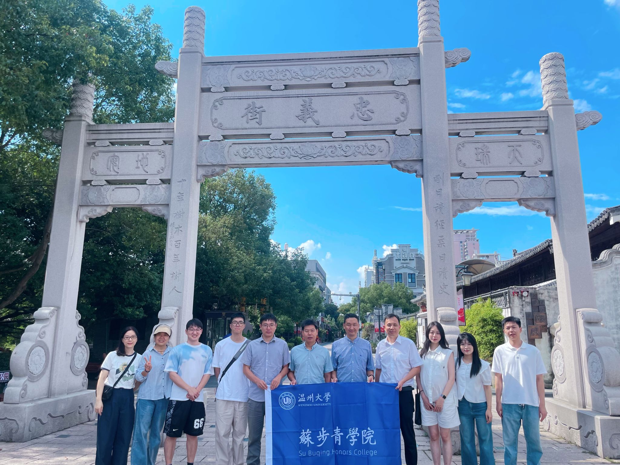 随后,全体成员来到忠义街的玉海楼藏书馆。作为浙江四大藏书楼之一,玉海楼以“玉成桃李,海纳江河”的理念承载着深厚的文脉底蕴。成员们漫步于古色古香的院落中,参观珍贵的古籍藏书、名人手稿与历史文献,聆听藏书楼主人孙诒让先生潜心治学、传承文化的事迹,在墨香与古建交织的氛围里,深刻体会到中华传统文化的博大精深,也激发了对文化传承与知识探索的热情。