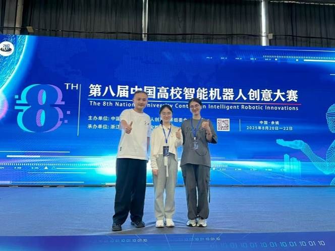 8月22日, 2025年第八届中国高校智能机器人创意大赛在浙江余姚圆满落幕,此竞赛汇聚了全省多所高校的优秀学子同台竞技,我院团队表现优异,经过激烈角逐,共斩获一等奖2项、二等奖1项、三等奖1项,充分展现了突出的创新能力和扎实的专业素养。