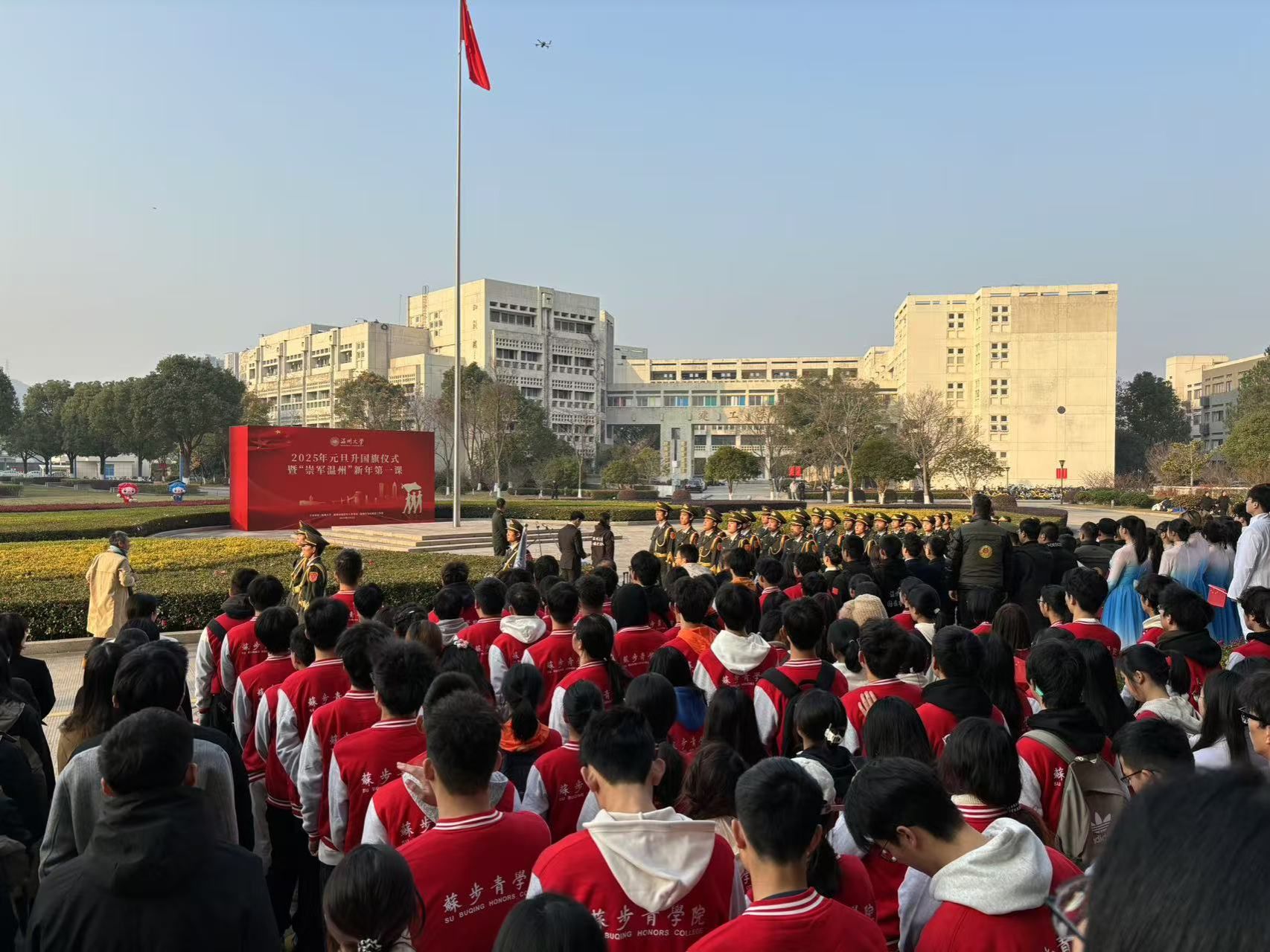 南校区行政楼前,参加2025年新年第一课暨元旦升国旗仪式。寒冬的清晨,现场却洋溢着温暖的氛围。随着庄严的国歌声响起,五星红旗在全体师生的注目下冉冉升起。